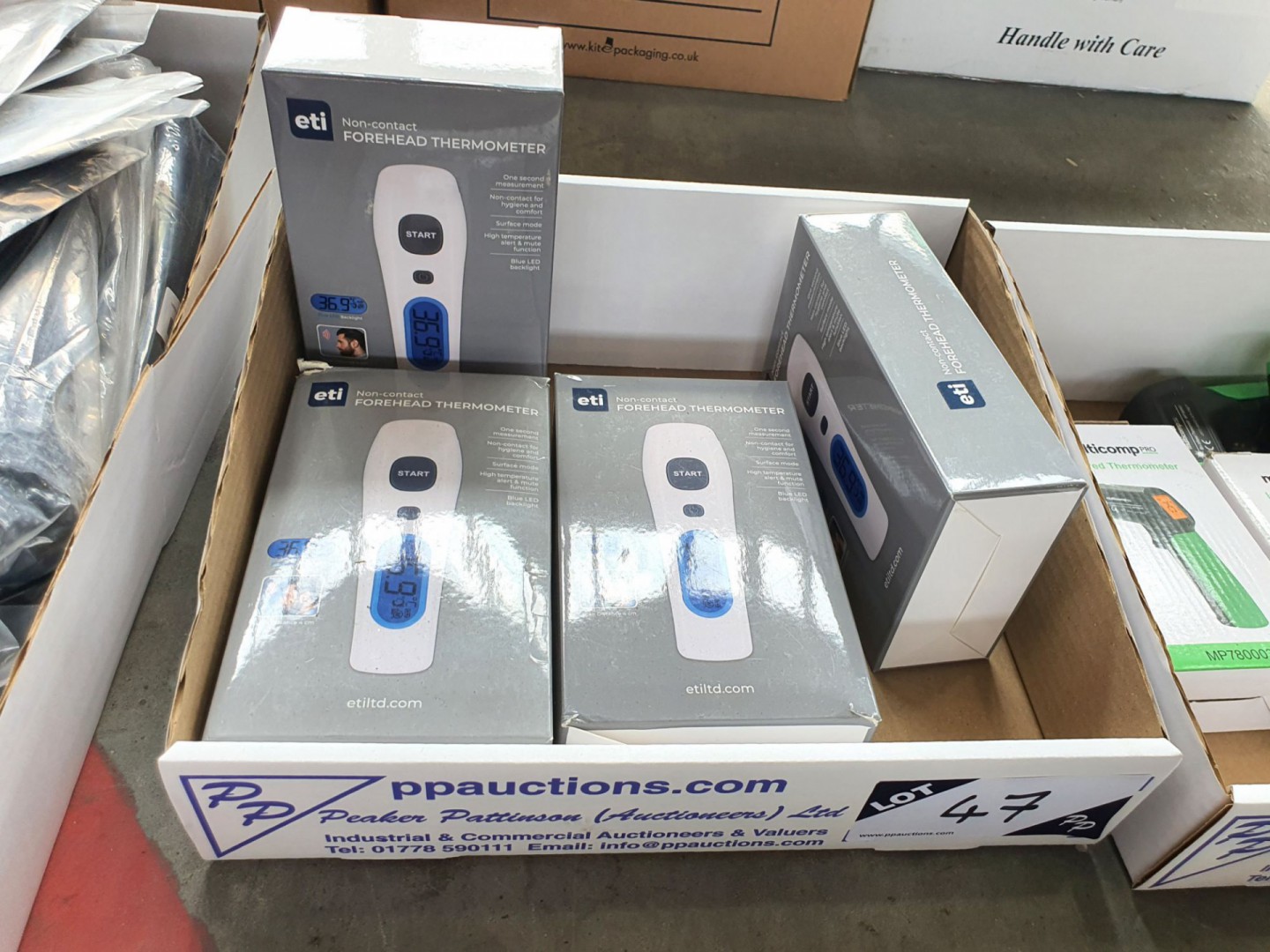 4x Eti 801-590 non-contact forehead thermometers (boxed) - Lot Located at: Alconbury - Building 164