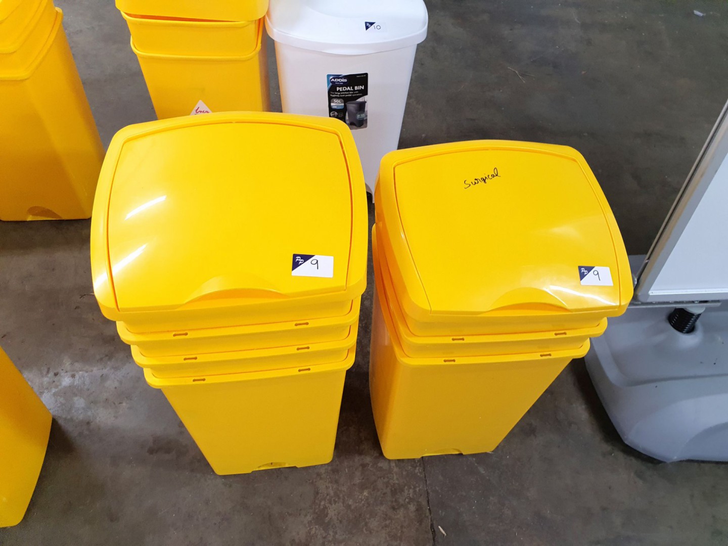 7x yellow plastic waste bins, 50L cap (unused) - L...