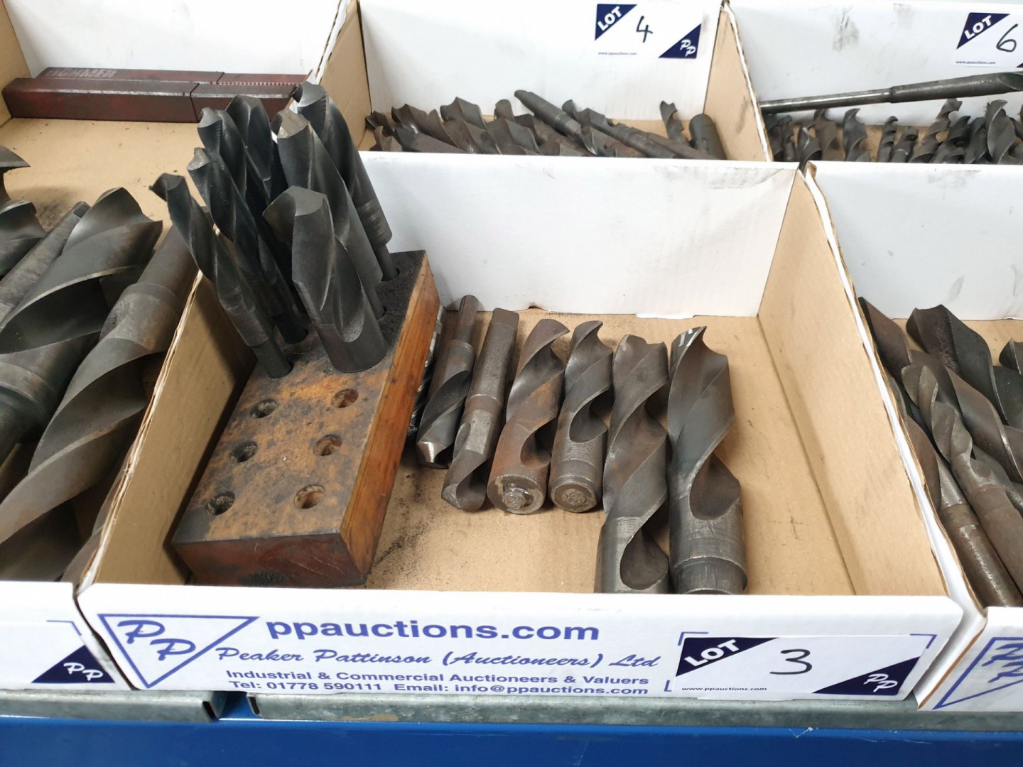 Qty HSS straight shank twist drills to 1 1/8" approx