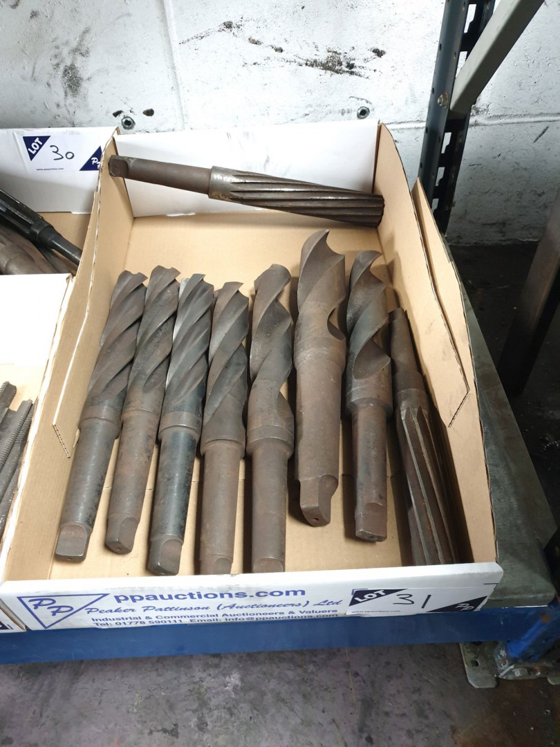 Qty HSS taper shank twist drills, reamers to 2" ap...