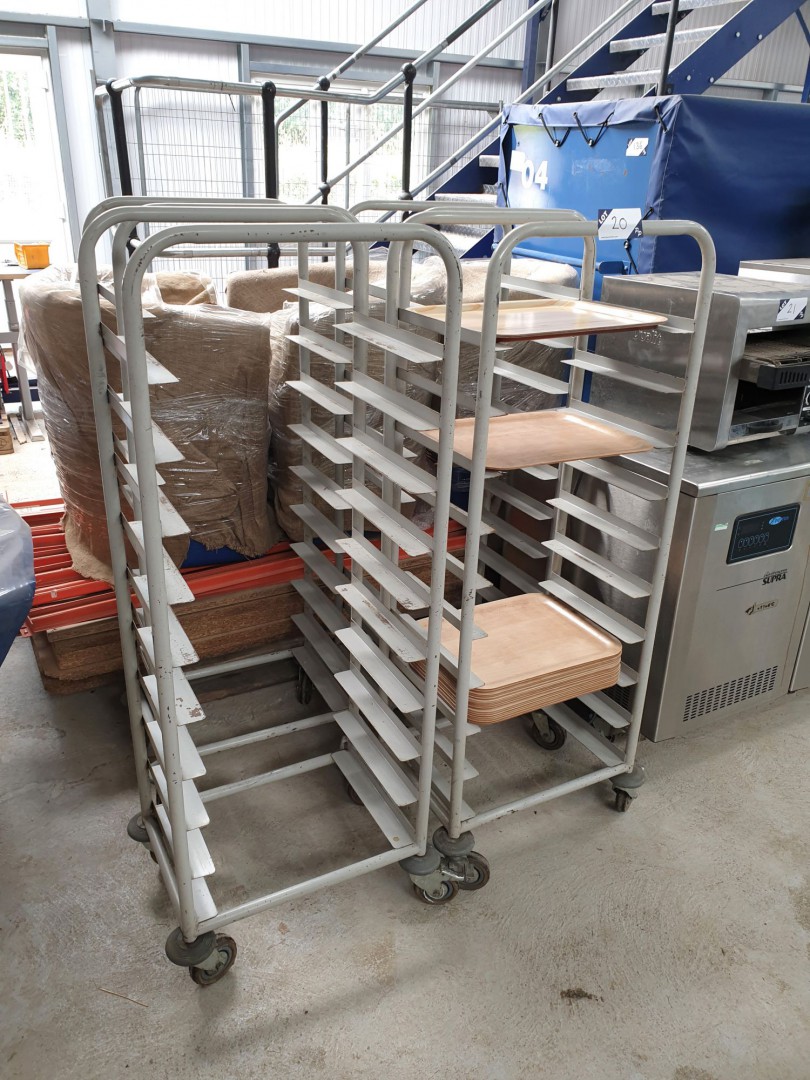 4x mobile serving tray trolleys
