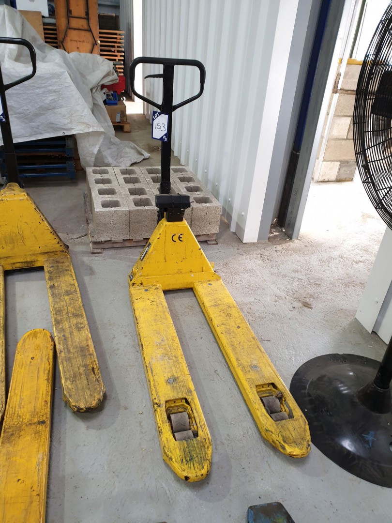 Qty various, Hyster, Nesco etc pallet trucks, digital scales (to 2018)