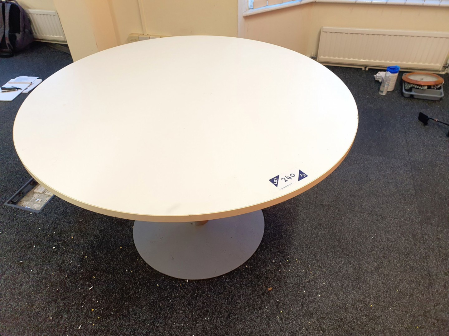 White 1200mm dia meeting table with black upholstered swivel chair - Lot Located at: Corby, Northamptonshire