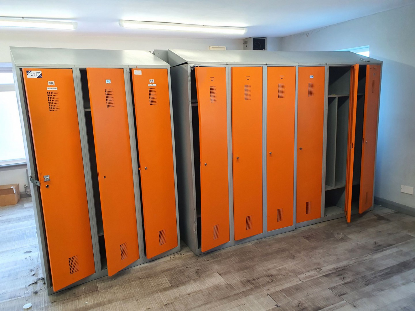 7x orange / grey 3 compartment lockers, 1200x2000x...