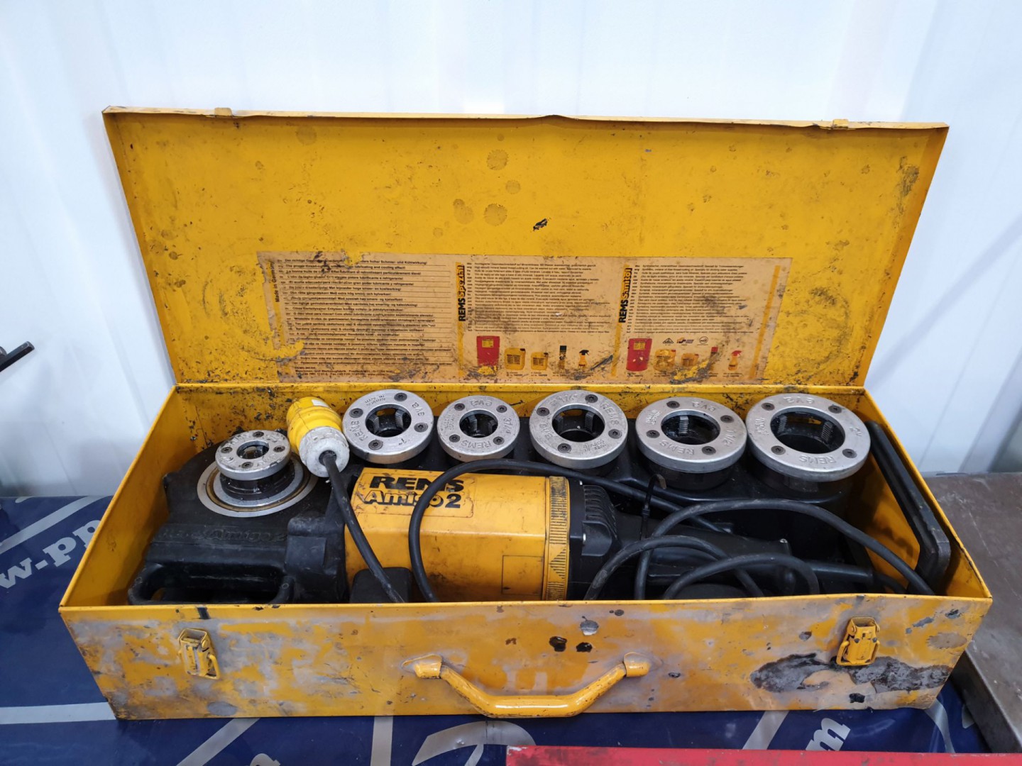 Rems Amigo 2 110v pipe threader inc: thread cutter in metal carry case - Lot Located at: PP Saleroom, Aunby, Lincolnshire