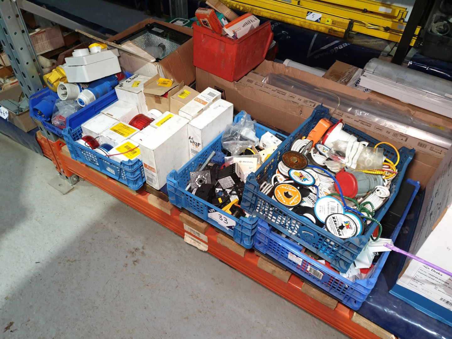 Qty various electrical spares inc: buttons, sockets, contactors, beacons etc - Lot Located at: PP Saleroom, Aunby, Lincolnshire