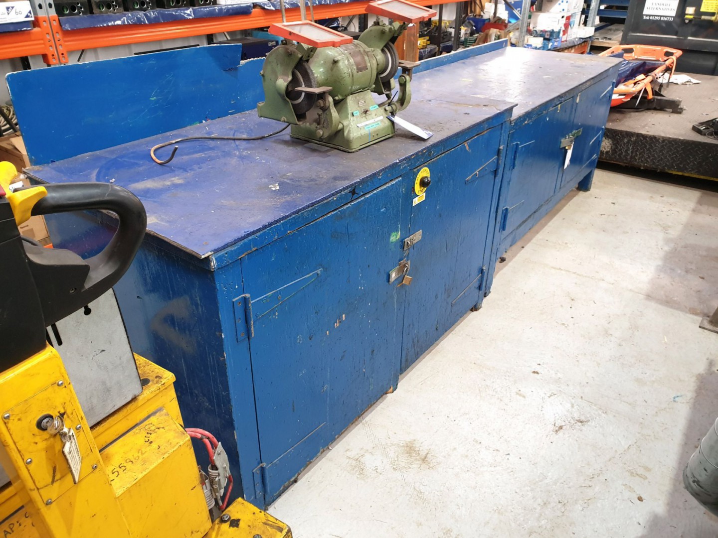 2x wooden workbenches with built in cupboards, 1800x1800mm - Lot Located at: PP Saleroom, Aunby, Lincolnshire