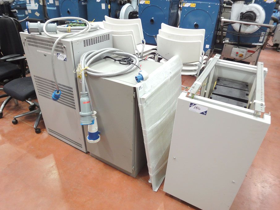 2x Link Electronics 228 PAL decoders. 5x Link Electronics 229 quad video delays. 12x Link Electronics 280 vision distribution amplifiers. 2x Solatron stabilised power supplies. Advanced Electrical Varnishes 40M Megohmeter Insulation test unit. 2x Electrospray Paint test meters, Elcometer Adhesion Tester. World War II mobile power supply for type X encoder.4