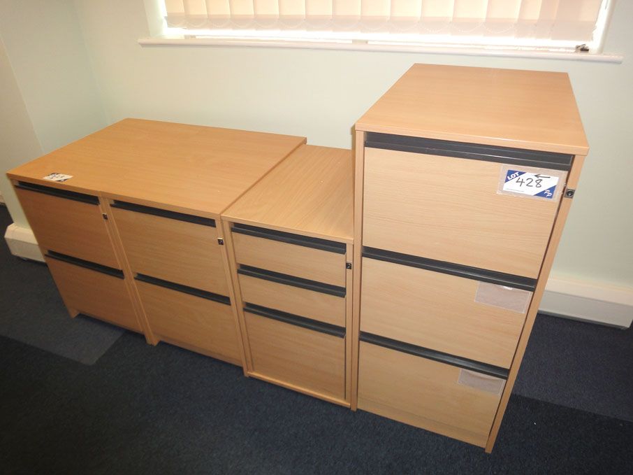 2x maple effect 2 drawer & 1x 3 drawer pedestal units & 3 drawer filing cabinet - Lot located at: Tamworth