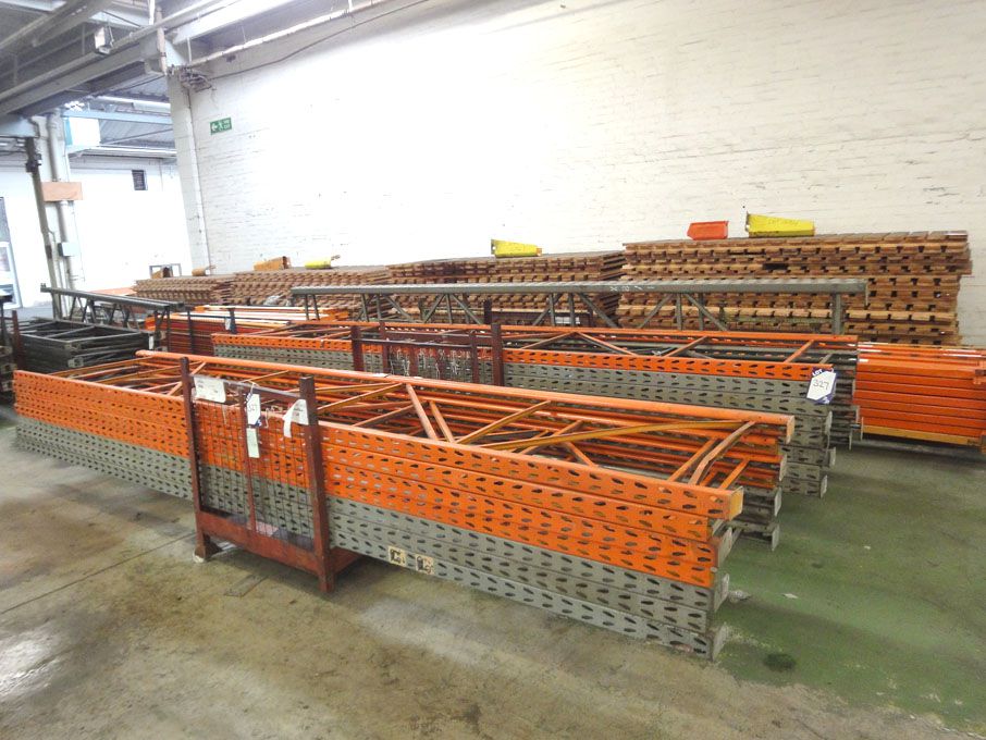 16 bays heavy duty boltless pallet racking, multishelf, 2700x900mm bay size, 4200mm high approx with boards, 2 pallets of boards, in 4 stillages - Lot located at: Llantrisant, Rhondda Cynon Taff, Wales