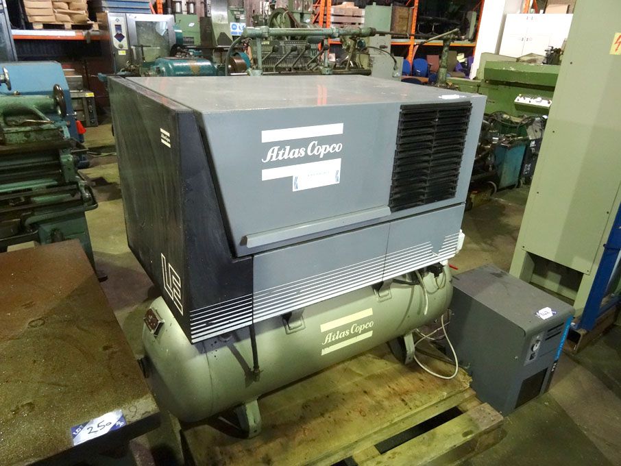Atlas Copco LE8 compressor on 200ltr air receiver, 10bar with Atlas Copco FX2 air dryer - Lot located at: PP Saleroom, Aunby, Lincolnshire