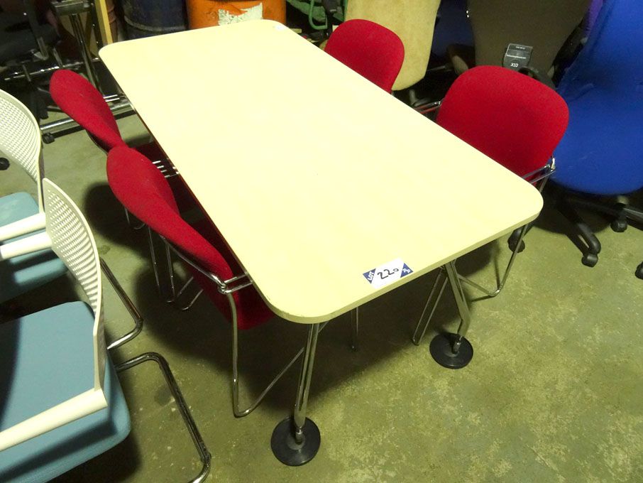 Maple 1600x800mm meeting table with 4x red upholstered, chrome frame stackable chairs - Lot located at: PP Saleroom, Aunby, Lincolnshire