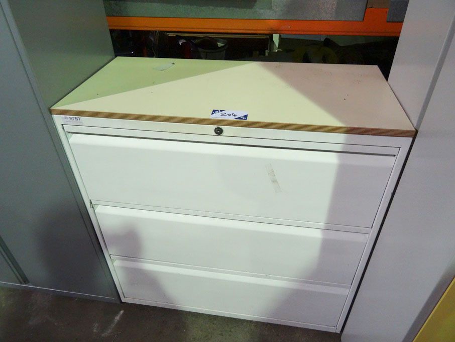 Bisley white metal 3 drawer filing cabinet, 1000x470x1000mm - Lot located at: PP Saleroom, Aunby, Lincolnshire