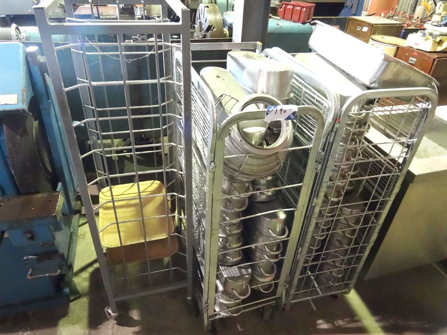 Qty various stainless steel serving trays etc on 2 trolleys - Lot located at: PP Saleroom, Aunby, Lincolnshire