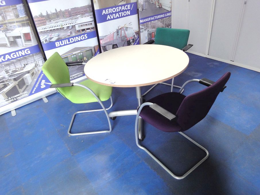 Qty Wisner Hager etc 1000mm, 1200mm dia meeting tables with Qty Vitra Orange / grey plastic back chairs