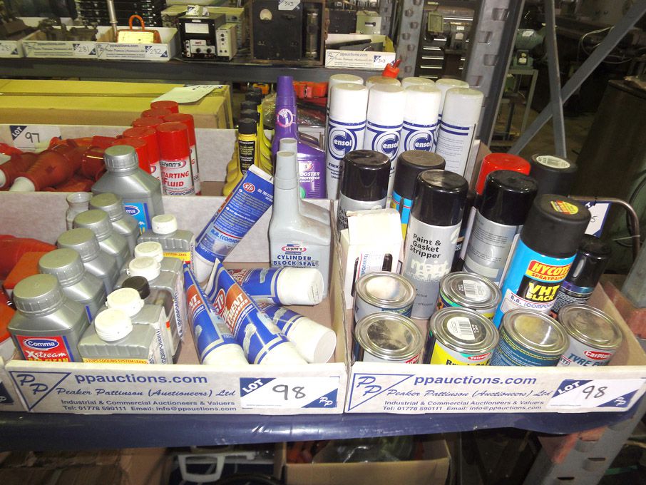 Large Qty car maintenance products inc: Wynns cylinder block seal, STP oil treatment, Wynns starting fluid, Wynns octane booster, Carplan tyre paint, paint & gasket stripper etc in 4 boxes - lot located at: Aunby, Lincolnshire