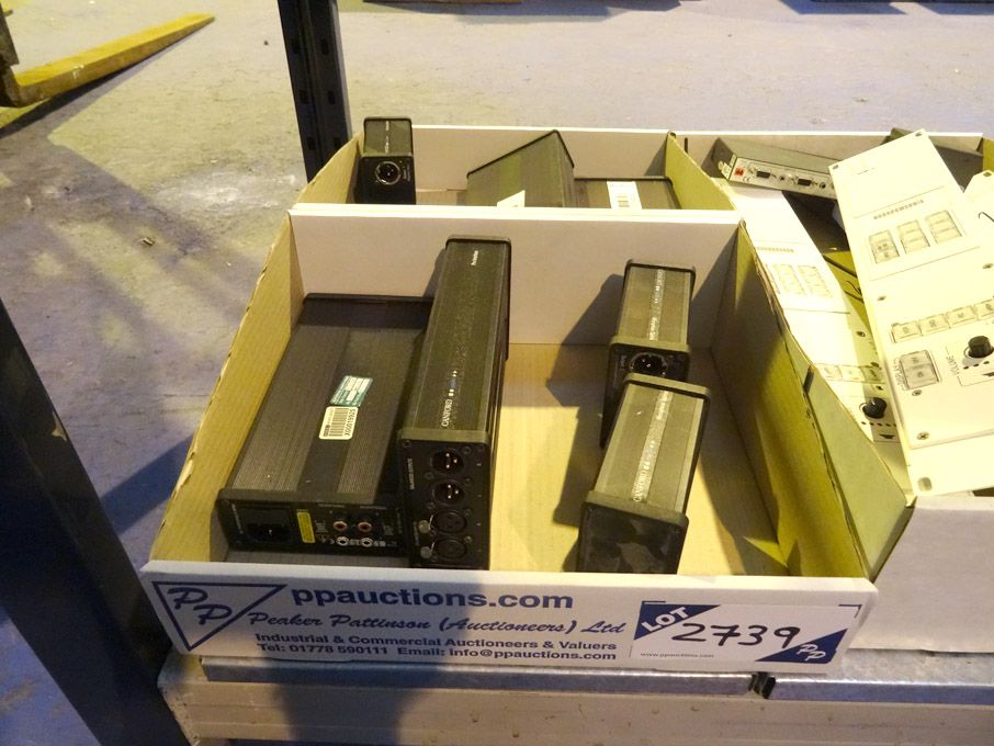 Encoders / Decoders, Chassis, Routers, A/D & D/A converters, sync generators, processors, cameras, microphones, speakers, headphones, clocks, CD / MD players & recorders, amplifiers, matrix mixers, MDU's, KVM swtiches, receivers, servers, lighting rigs, cable, storage media, RF equipment, flight cases, patch panels etc etc