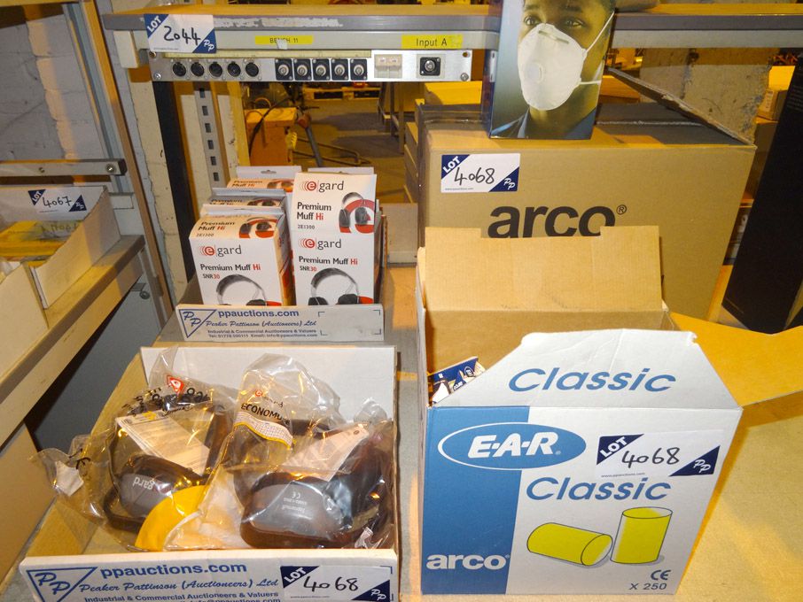 Qty ear plugs, face masks, ear defenders etc (unused)