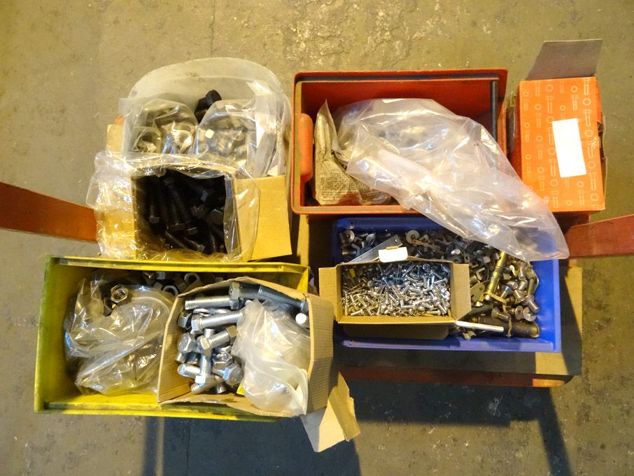 Mobile storage trolley with Qty various nuts, bolts, screws etc