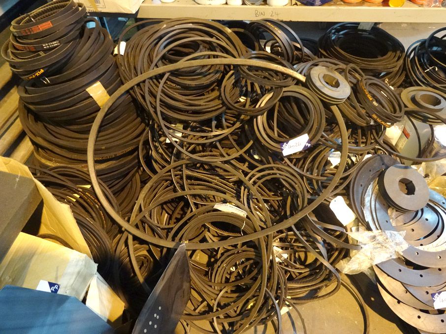 Large Qty various size Vee belts, pulleys etc