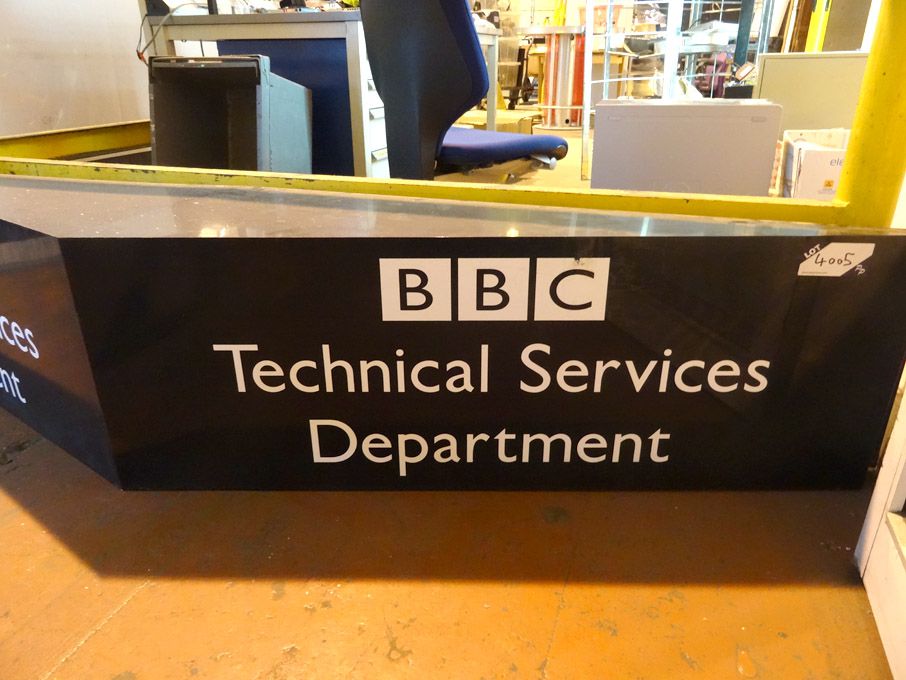 'BBC Technical Services Department' triangular metal sign, 2400mm long