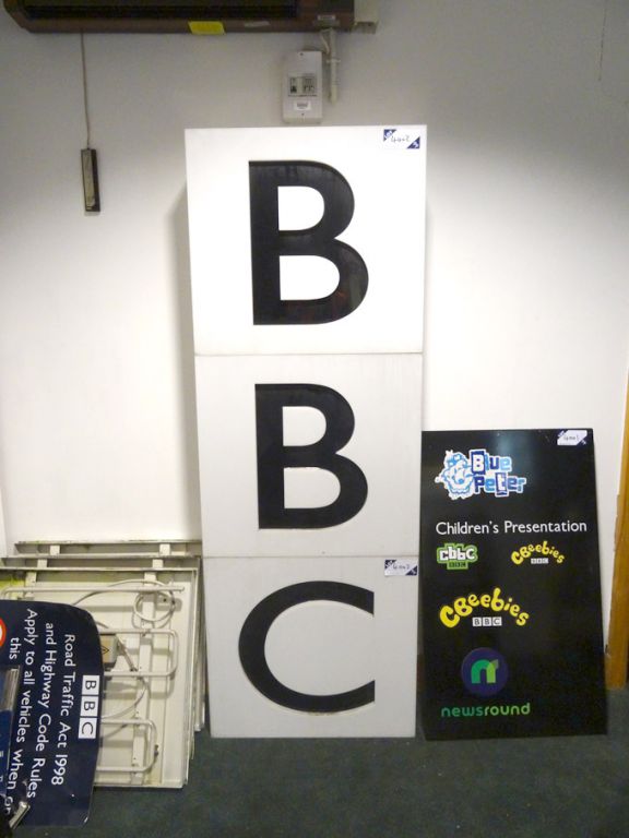'BBC' Perspex illuminated signs, 670x630mm