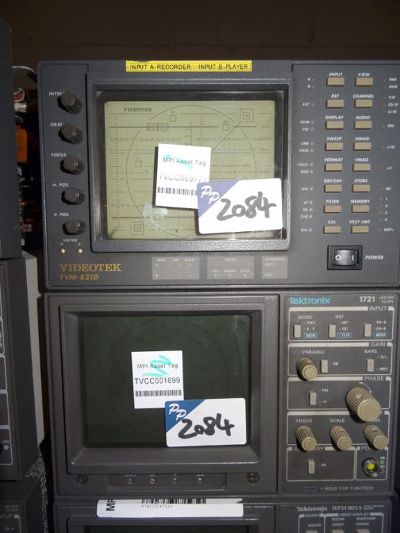 Tektronix 1721 vectorscope, Videotek TVM-821D serial digital component monitor / vectorscope