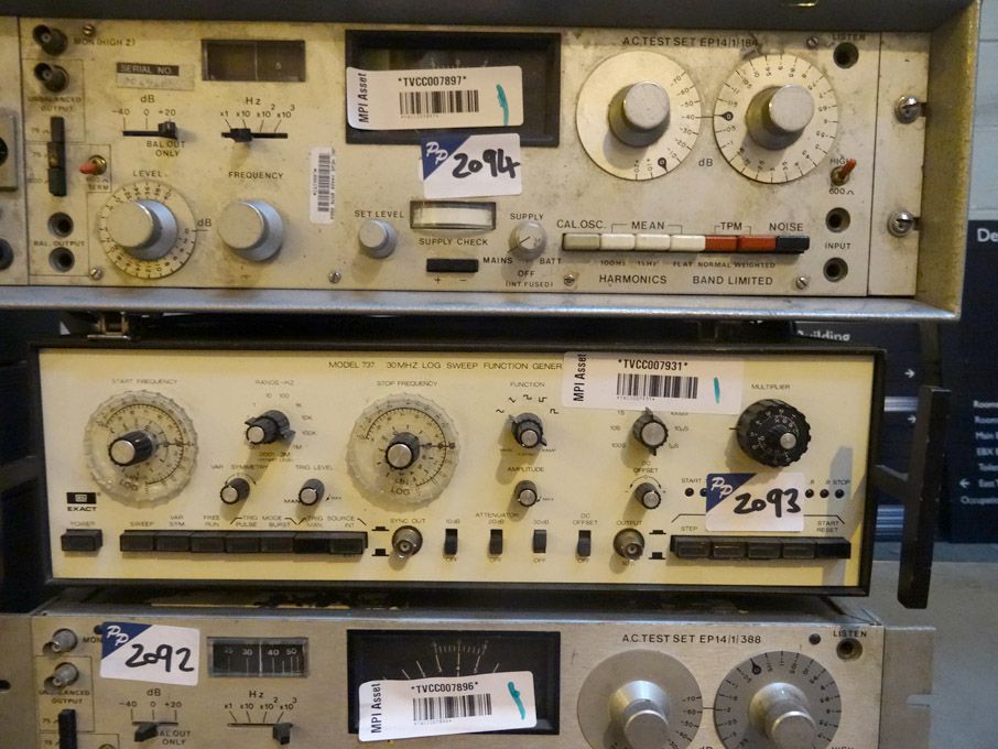 Encoders / Decoders, Chassis, Routers, A/D & D/A converters, sync generators, processors, cameras, microphones, speakers, headphones, clocks, CD / MD players & recorders, amplifiers, matrix mixers, MDU's, KVM swtiches, receivers, servers, lighting rigs, cable, storage media, RF equipment, flight cases, patch panels etc etc