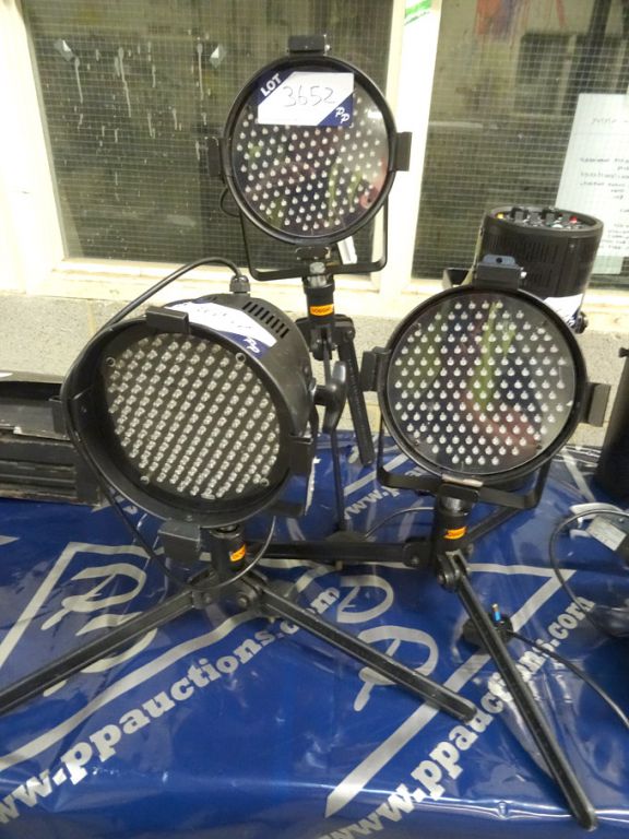 3x Doughty LED PAR56R RGB DMX lights on tripods