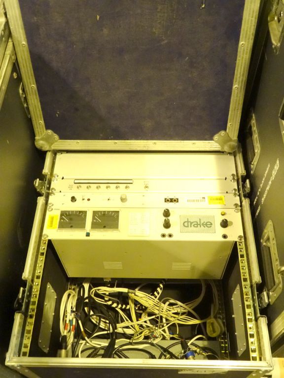 Metal frame mobile storage case 22x20x22" with Drake PD5022 stereo monitoring unit etc