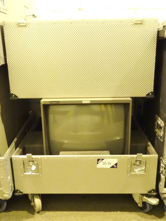 Metal mobile storage case with Ikegami 20" CRT monitor