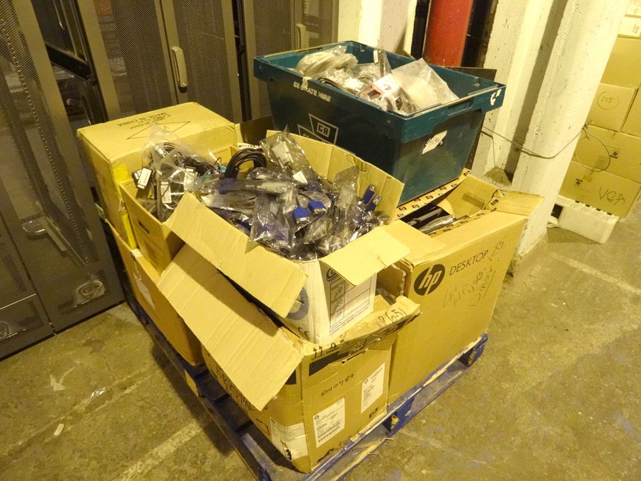Qty various keyboards, VGA / DVI leads, Firewire 800 cables etc on pallet (mainly packaged & unused)