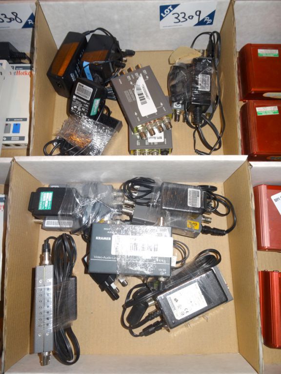 Encoders / Decoders, Chassis, Routers, A/D & D/A converters, sync generators, processors, cameras, microphones, speakers, headphones, clocks, CD / MD players & recorders, amplifiers, matrix mixers, MDU's, KVM swtiches, receivers, servers, lighting rigs, cable, storage media, RF equipment, flight cases, patch panels etc etc