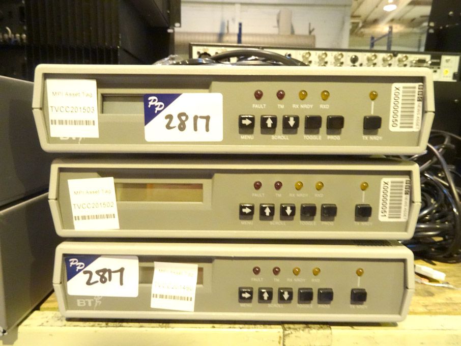 Encoders / Decoders, Chassis, Routers, A/D & D/A converters, sync generators, processors, cameras, microphones, speakers, headphones, clocks, CD / MD players & recorders, amplifiers, matrix mixers, MDU's, KVM swtiches, receivers, servers, lighting rigs, cable, storage media, RF equipment, flight cases, patch panels etc etc