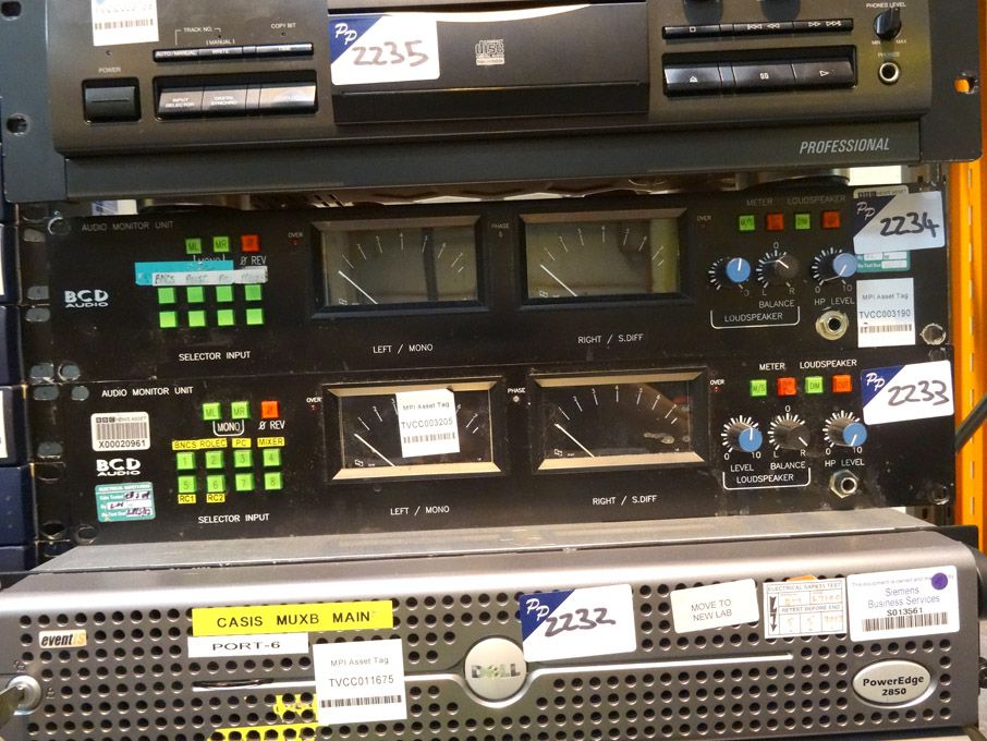 Encoders / Decoders, Chassis, Routers, A/D & D/A converters, sync generators, processors, cameras, microphones, speakers, headphones, clocks, CD / MD players & recorders, amplifiers, matrix mixers, MDU's, KVM swtiches, receivers, servers, lighting rigs, cable, storage media, RF equipment, flight cases, patch panels etc etc