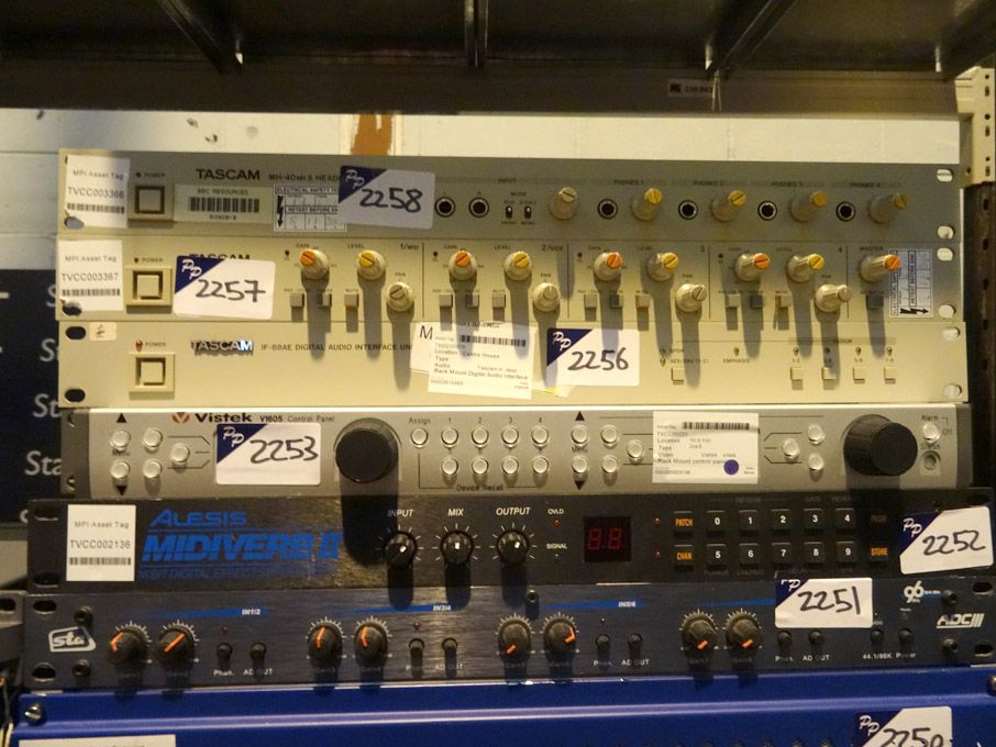 Encoders / Decoders, Chassis, Routers, A/D & D/A converters, sync generators, processors, cameras, microphones, speakers, headphones, clocks, CD / MD players & recorders, amplifiers, matrix mixers, MDU's, KVM swtiches, receivers, servers, lighting rigs, cable, storage media, RF equipment, flight cases, patch panels etc etc