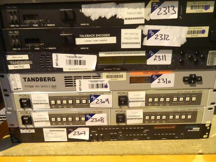 Encoders / Decoders, Chassis, Routers, A/D & D/A converters, sync generators, processors, cameras, microphones, speakers, headphones, clocks, CD / MD players & recorders, amplifiers, matrix mixers, MDU's, KVM swtiches, receivers, servers, lighting rigs, cable, storage media, RF equipment, flight cases, patch panels etc etc