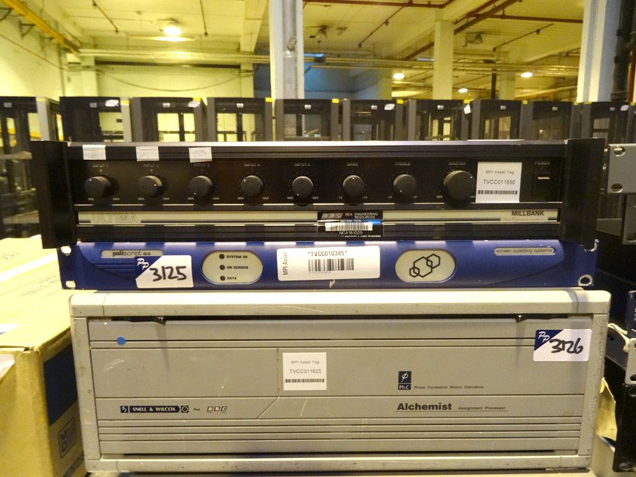Encoders / Decoders, Chassis, Routers, A/D & D/A converters, sync generators, processors, cameras, microphones, speakers, headphones, clocks, CD / MD players & recorders, amplifiers, matrix mixers, MDU's, KVM swtiches, receivers, servers, lighting rigs, cable, storage media, RF equipment, flight cases, patch panels etc etc