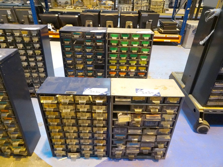 4x Raaco etc multi drawer storage cabinets with Qty various electronic components & accessories
