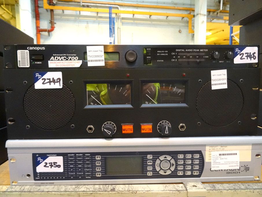 Encoders / Decoders, Chassis, Routers, A/D & D/A converters, sync generators, processors, cameras, microphones, speakers, headphones, clocks, CD / MD players & recorders, amplifiers, matrix mixers, MDU's, KVM swtiches, receivers, servers, lighting rigs, cable, storage media, RF equipment, flight cases, patch panels etc etc