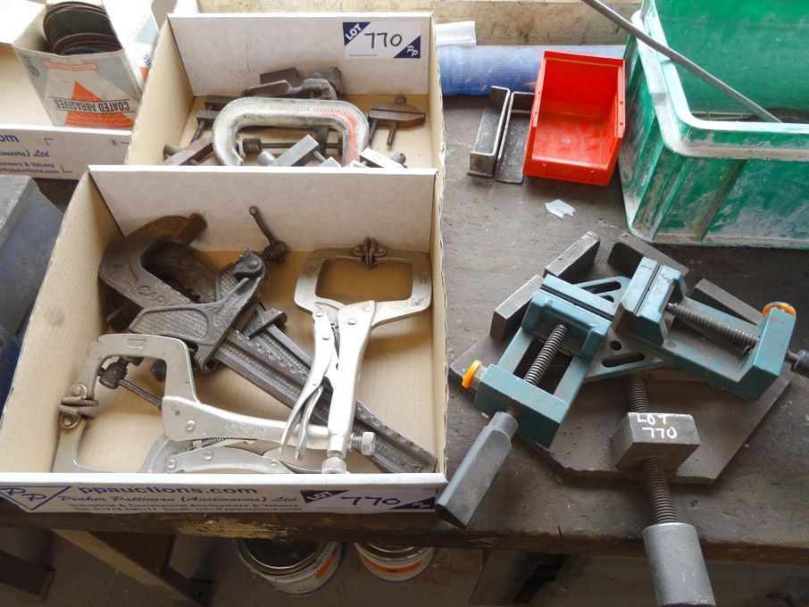Qty various G clamps, Carver clamps, Irwin grip cl...