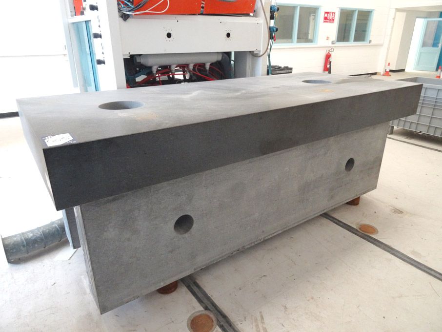 Microplan granite table, 2710x1150x1080mm with two cut outs