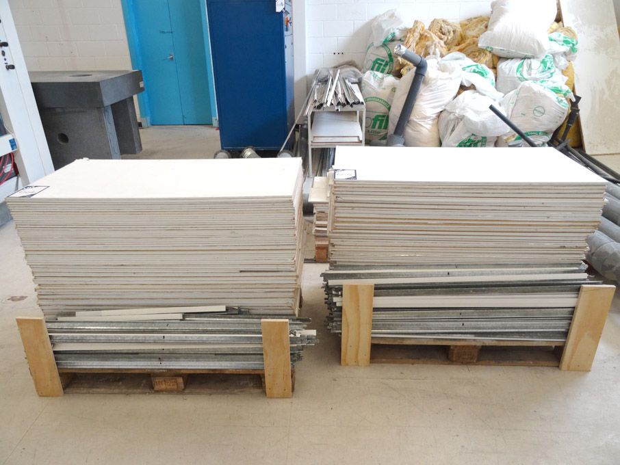Qty various suspended ceiling panels, struts, plastic piping, ducting, insulation (dismantled)