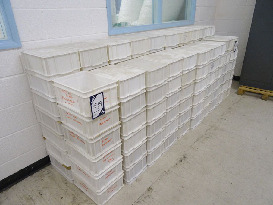 Qty various waste bins, office fans, storage cabinets, ultraviolet lights, light boxes, storage racks, skips, step ladders, safety steps, lockers, foot staplers, boxes, staple guns, various trolleys, vacuum cleaners, fire extinguishers, canteen tables, workbenches etc