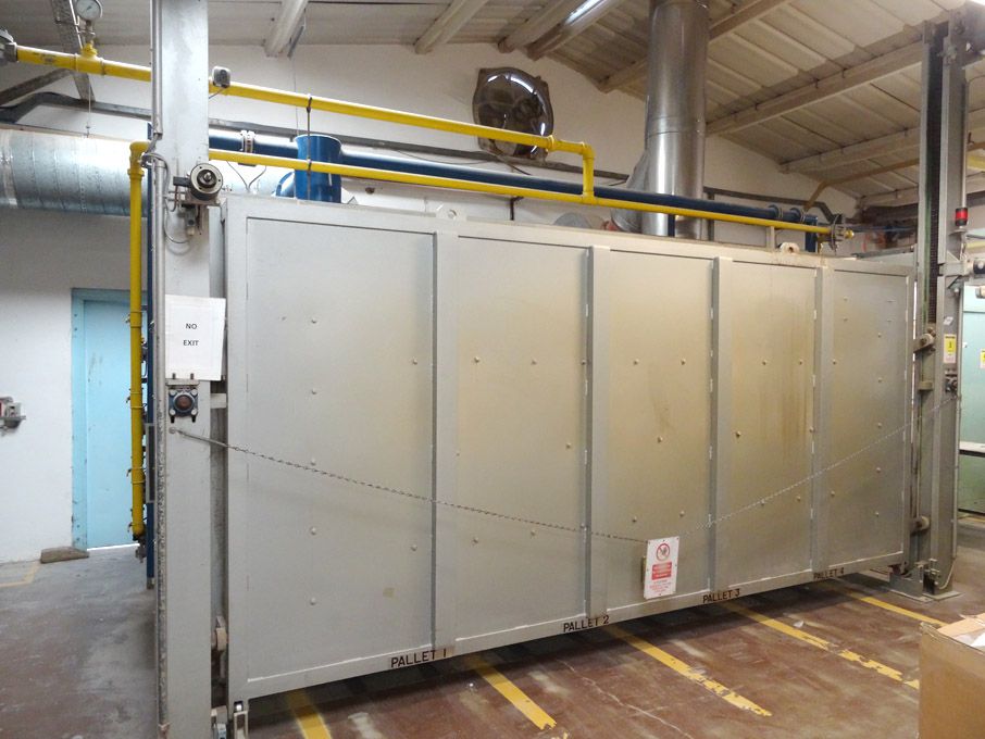 Grun 4 pallet gas chamber kiln, 4800mm long x 2000mm wide x 2200mm high approx, 1400degC max temperature, Krom Schroded gas compressor, control, ducting, skid mounted