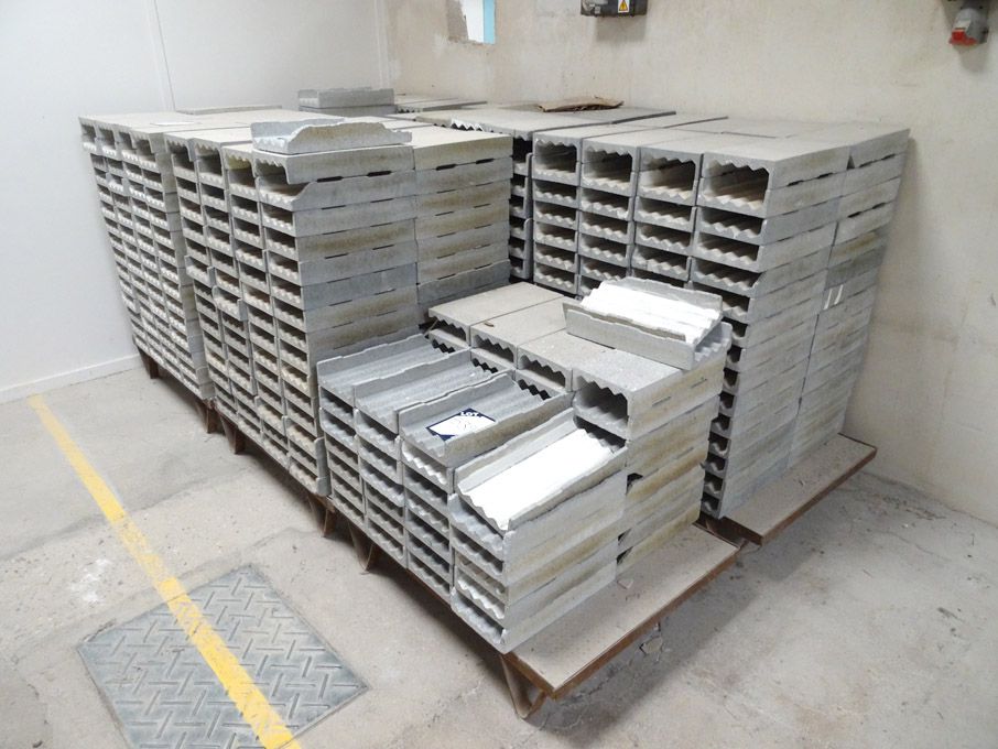 Large Qty 4V plates high temperature firing trays on 6 pallets