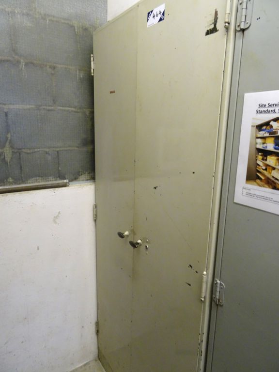 2 door metal storage cupboard, 920x2080x440mm with contents inc: timers, counter cases & resistors etc