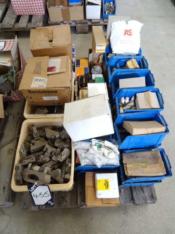 Qty maintenance spares inc: cable, fuses, nuts, bolts, clamps, valves, motors, pumps, relays, chart recorders, pipe fittings, switches, plastic / metal ducting, sprockets etc