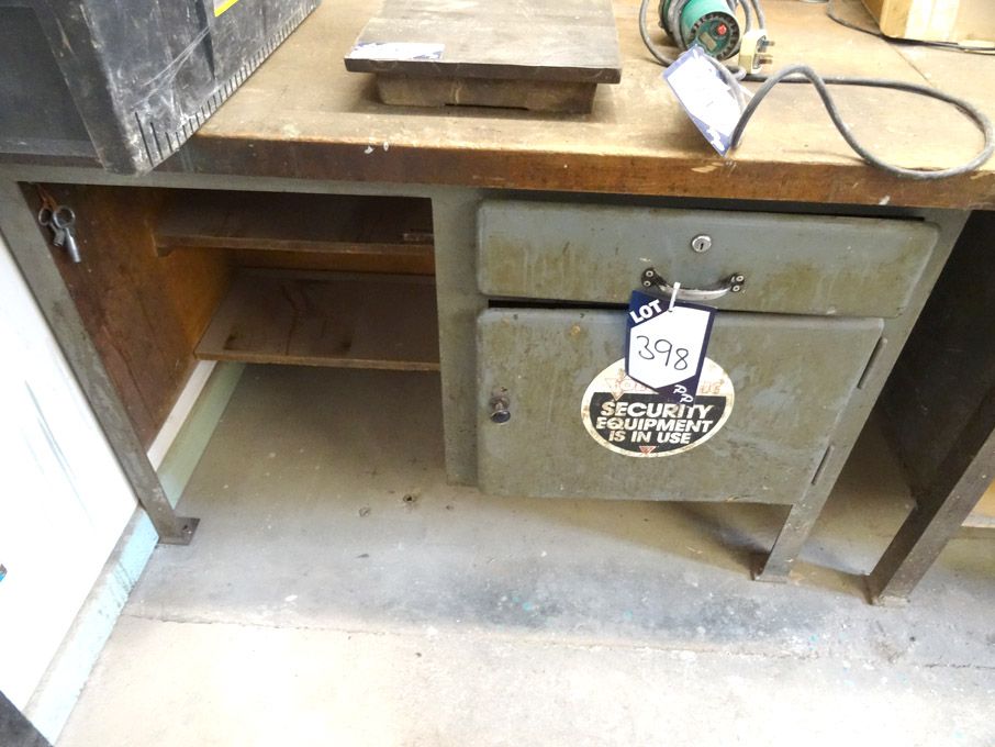 1200x700mm wooden top metal frame workbench with storage cupboard