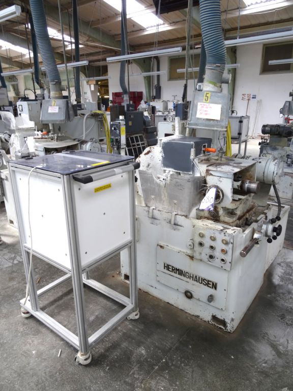 4x Herminhausen SR3 centreless grinders, 21kW, coolant, AA rotary bowl feed & load conveyor (1976 to 1982)